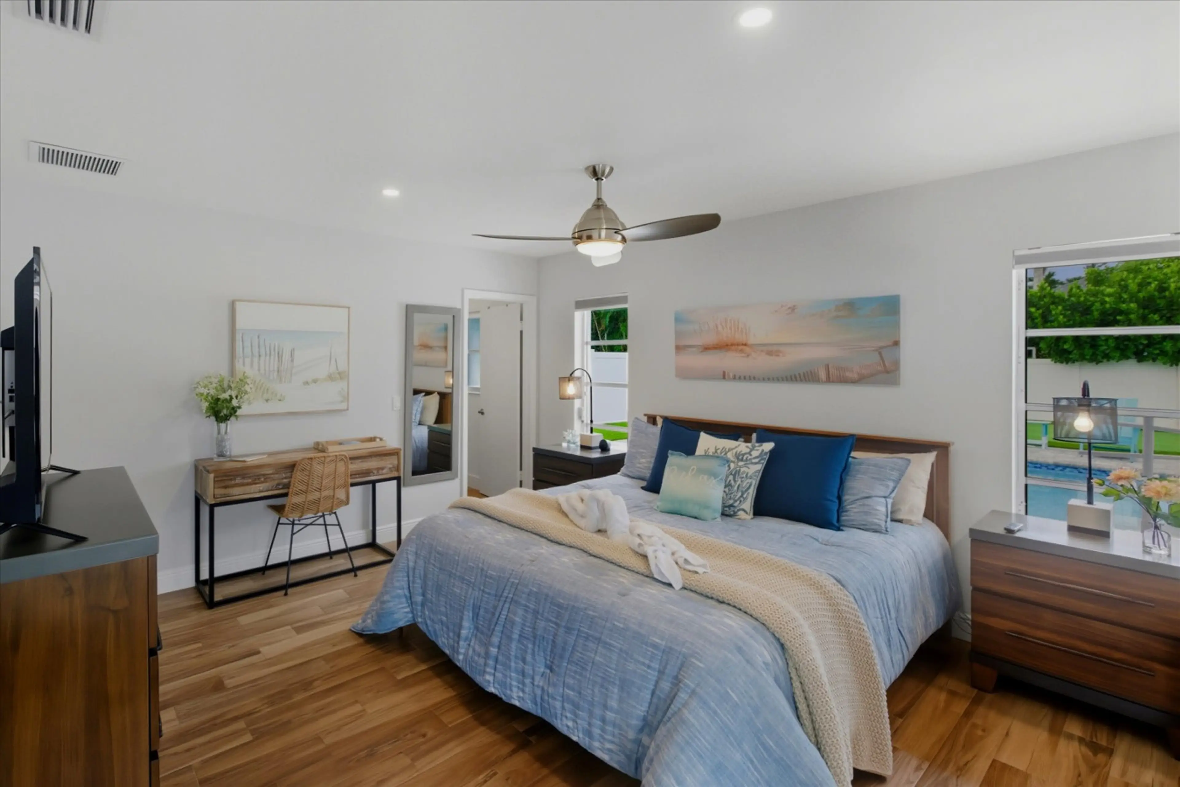 Welcome to your Naples Park escape! This modern 2-bedroom, 2-bath home blends comfort and fun with everything you need for a Florida getaway. Relax in the large private heated pool, practice your swing on the turf putting green, or unwind by the fire pit at night. With 4 complimentary beach bikes, B...